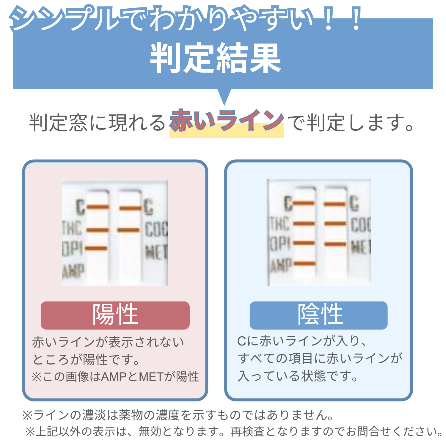 ●カットオフ値(唾液中に次の濃度以上の薬物が含有されている場合陽性を示します)